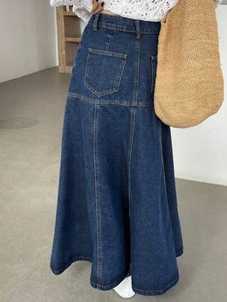 DAZY تنورة جينز كاجوال نسائية مع جيوب، قصة A-Line