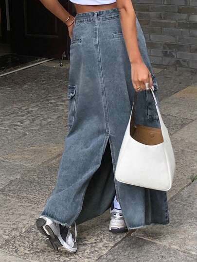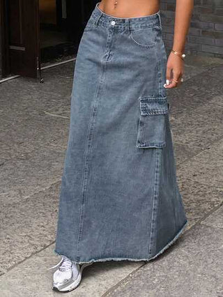 DAZY تنورة جينز مبهت غربي كاجوال نسائي رجعي للصيف، مع جيوب