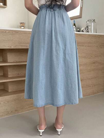 DAZY تنورة دنيم خصر عالي تفاصيل خياطة