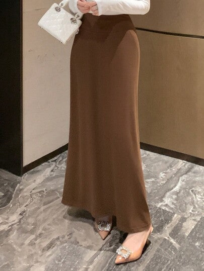 DAZY تنورة رمادية نسائية طويلة مسترخية الذيل، ملابس رمضان