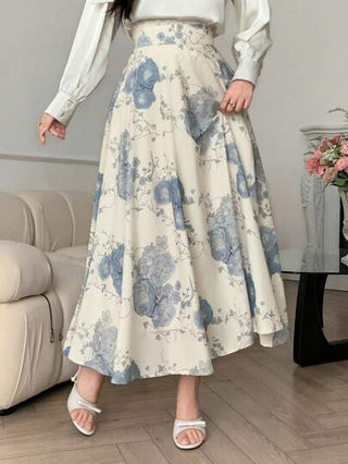 DAZY تنورة طويلة مطبوعة بطبعات زهور للنساء ، أنيقة للربيع والصيف