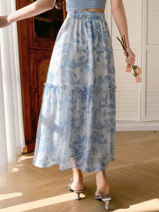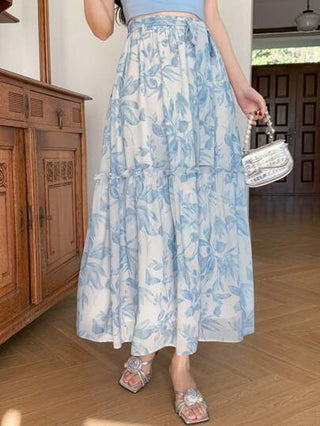 DAZY تنورة نسائية بنمط زهري عادي شكل A ،عصرية وكاجوال للارتداء اليومي الصيفي