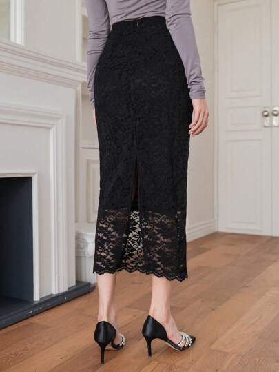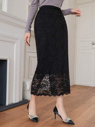DAZY تنورة نسائية مصممة بقصة أيه لاين ومزينة بالدانتيل بلون سادة