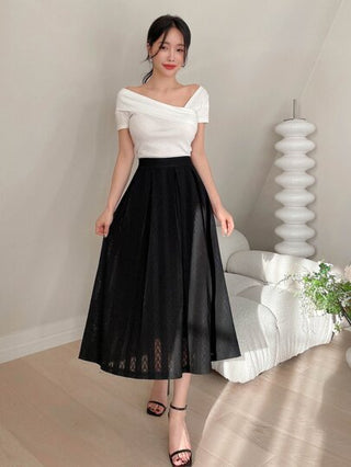 DAZY تنورة واسعة بخصر عالٍ من الحرير الصلب