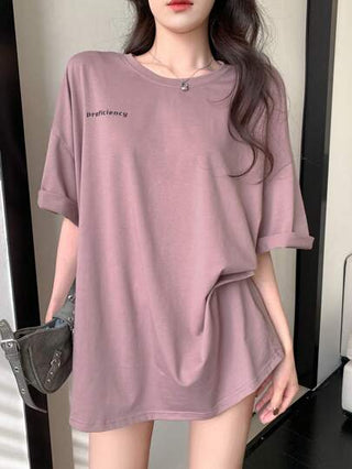 DAZY تيشيرت فضفاض كاجوال للنساء بأكمام قصيرة مطبوع بياقة مستديرة