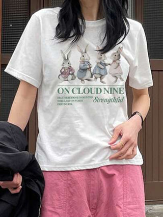 DAZY تيشيرت قصير فضفاض بأكمام قصيرة للنساء مطبوع عليه أرنب، قمصان صيفية جميلة