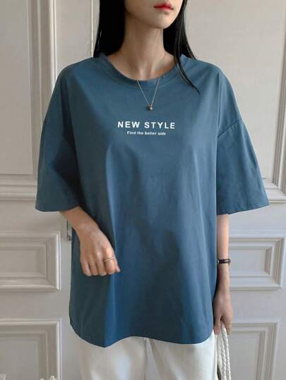 DAZY تيشيرت نسائي كاجوال فضفاض مطبوع عليه حروف أكمام قصيرة