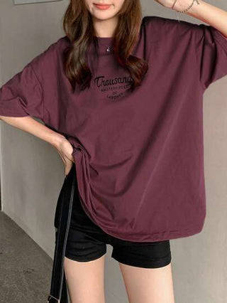DAZY تي شيرت مناسب للنساء قصير الأكمام به طباعة شعار، بحجم كبير للصيف
