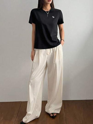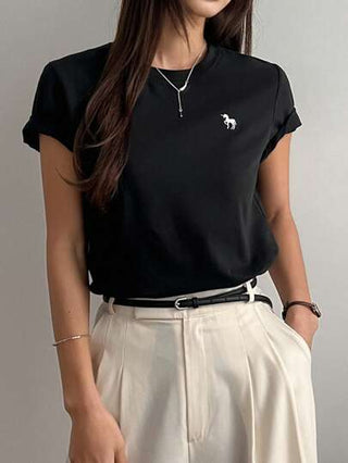 DAZY تي شيرت نسائي بأكمام قصيرة وياقة دائرية سهل التطريز، للارتداء اليومي العادي