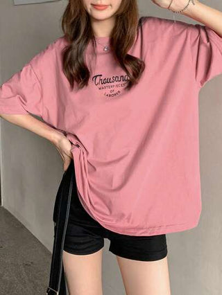 DAZY تي شيرت نسائي بطبعة شعار كتف منخفض، "أروع عمال ألف لوحة فنية" مقاس كبير للصيف