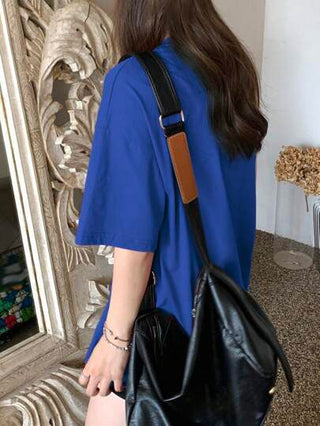 DAZY تي شيرت نسائي كبير الحجم ذو أكمام قصيرة منخفضة الكتف مطبوع عليه عنوان "آلاف من روائع عمال الإنتاج" للصيف