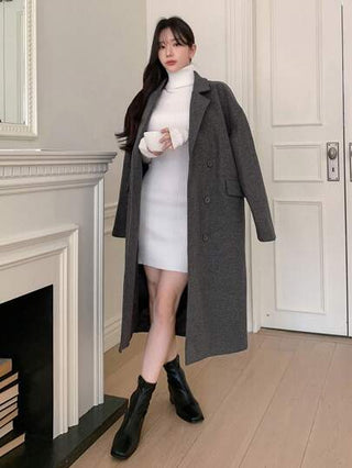 DAZY جاكيت غير رسمية للنساء بياقة ياقة طويلة الأكمام وحيدة الصدر بلون واحد مناسبة للخريف/الشتاء