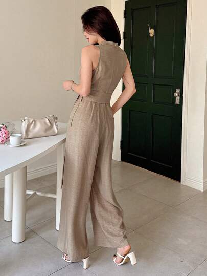DAZY جمبسوت فضفاضة ذات لون واحد مع حزام معلق، رومبير صيفي كاجوال وأنيق للنساء