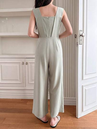 DAZY جمبسوت للنساء ذات لون واحد، بياقة مربعة وبدون أكمام، كاجوال وفضفاضة للارتداء اليومي