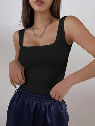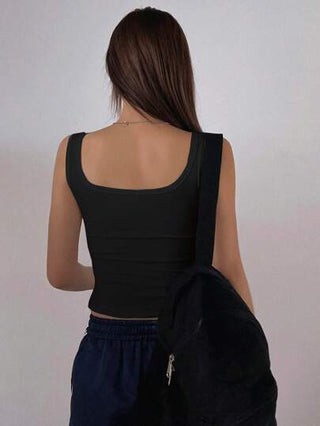 DAZY خزان مقصور أنثوي لون سادة بياقة حرف U ضيق للصيف