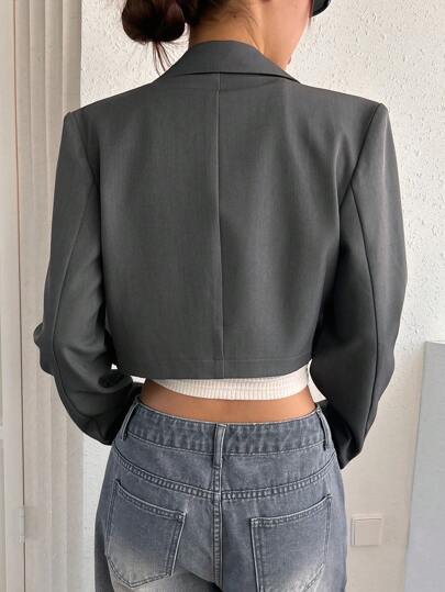 DAZY سترة بليزر قصيرة بلون صامد وياقة مشقوقة