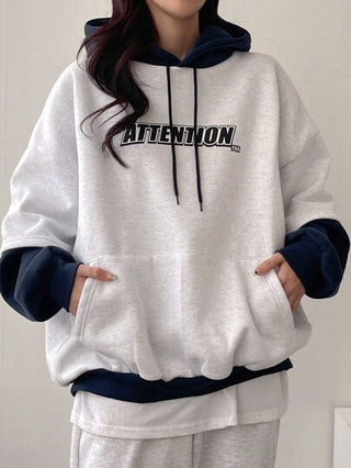 DAZY سترة رياضية مقنعة للسيدات، بطبعات حرفية وألوان متباينة, أكمام طويلة
