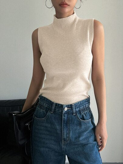 DAZY سترة صوفية نسائية بدون اكمام ذات ياقة مستقيمة