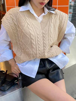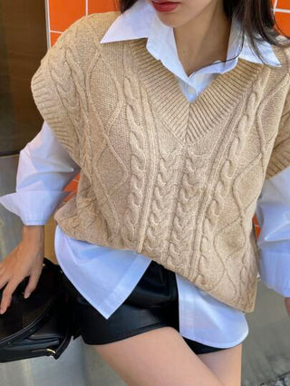 DAZY سترة/ صوفي بستايل الكابل بحاشية منفصلة من الأسفل (بدون القميص)