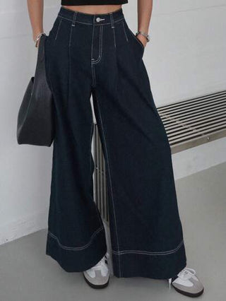 DAZY سروال جينز بساق واسعة وخياطة خارجية للنساء