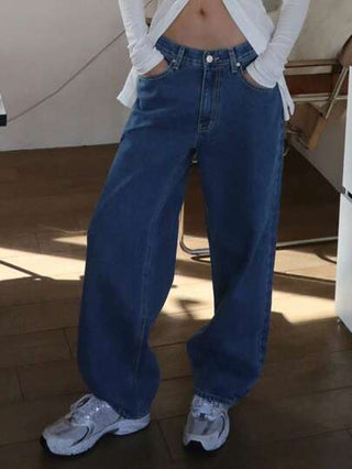 DAZY سروال جينز نسائي فضفاض أزرق داكن بجيوب, أسلوب كاجوال