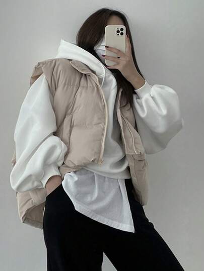 DAZY سويت شيرت نسائي كروب كبير بغطاء للرأس أحادي اللون