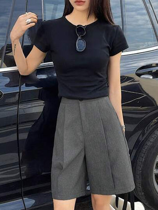 DAZY شورت برمودا فضفاض مطوي للنساء