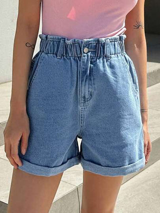 DAZY شورت جينز بخصر ورقي مزين بتطريز زهور