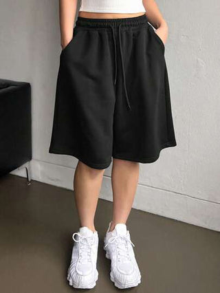 DAZY شورت صيفي نسائي بخصر مطاطي من اللون الأساسي مع رباط