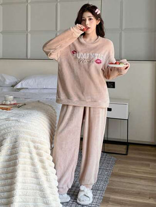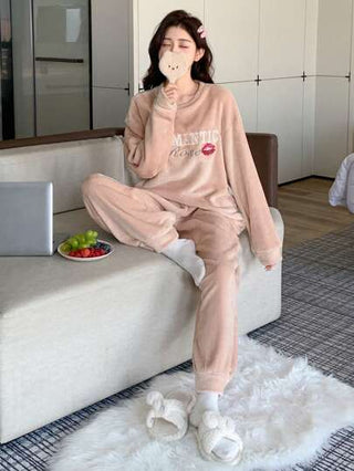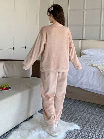 DAZY طقم بذلة نوم فضفاضة وقابلة للعكس ذات تطريز بنمط ديكوري من الفليس للشتاء