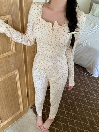 DAZY طقم بيجامة بأكمام طويلة وياقة صدر نحيفة مع طباعة زهور متناثرة