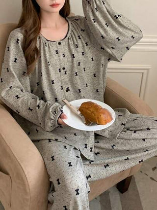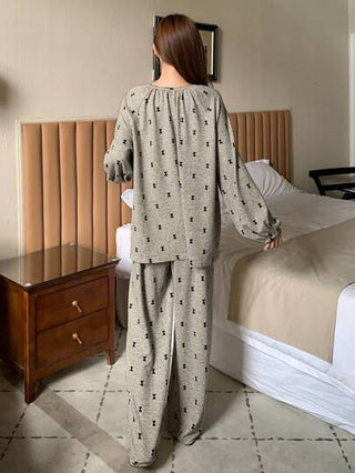 DAZY طقم بيجامة فضفاض بطبعة النقاط وأكمام فانوس مرخى مزين بفيونكة