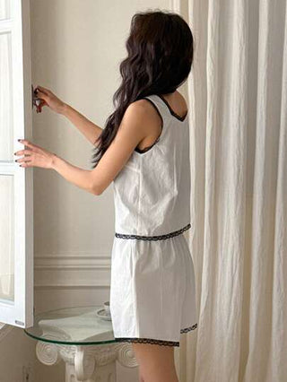 DAZY طقم بيجامة نسائية مكون من قطعتين بحواف من الدانتيل