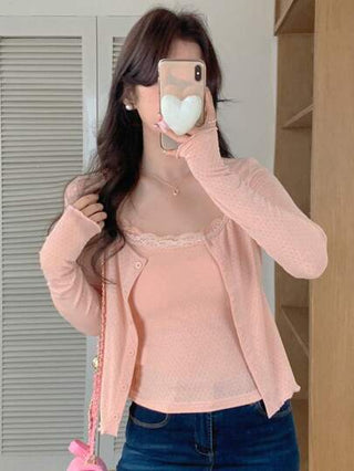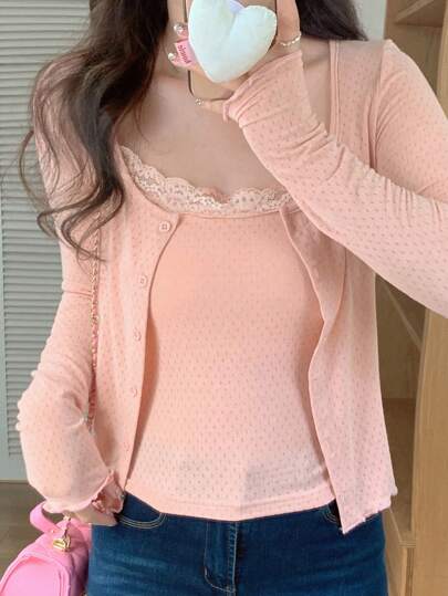 DAZY طقم من قطعتين غير رسمي للنساء بأكمام طويلة بتصميم لانجري