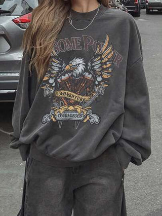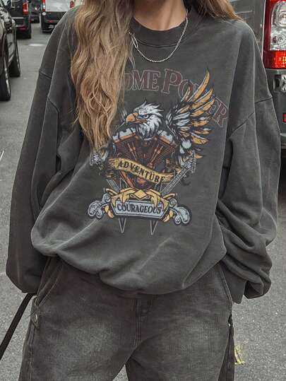 DAZY فستان نسائي بياقة دائرية كم طويل، مطبوع بشكل عفوي منحل وفضفاض