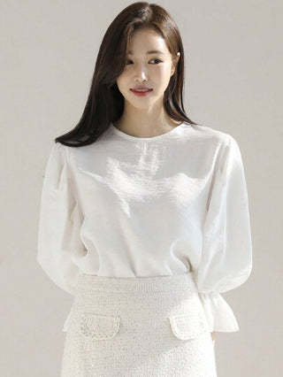 DAZY قميص أنيق أنثوي بأكمام جرس باللون الأحادي الطراز الكوري العصري للصيف،منسدل