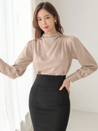 DAZY قميص بأكمام طويلة وطوق عالي يتميز بلون صلب وطيات