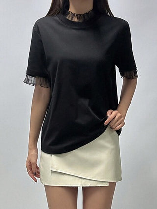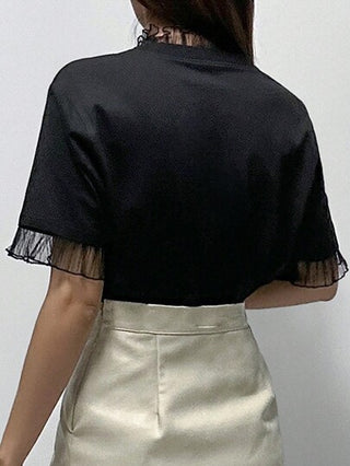 DAZY قميص تي شيرت نسائي بثنائية القطع وإدخال الشبكة