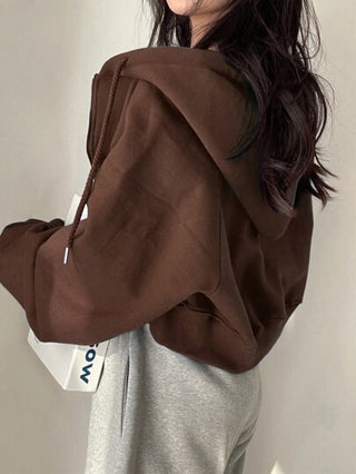 DAZY قميص ثقيل رياضي برقبة كابوشون قصير مبطن قابل للسحب للنساء في فصلي الخريف والشتاء