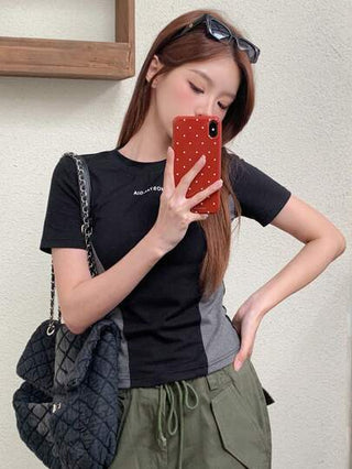 DAZY قميص قصير الأكمام ذو رقبة دائرية مطبوع عليه حرف يتضارب مع صورة رقيق ملائم