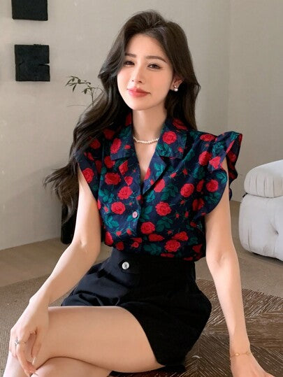 DAZY قميص نسائي بزينة حافة بطية زهرية