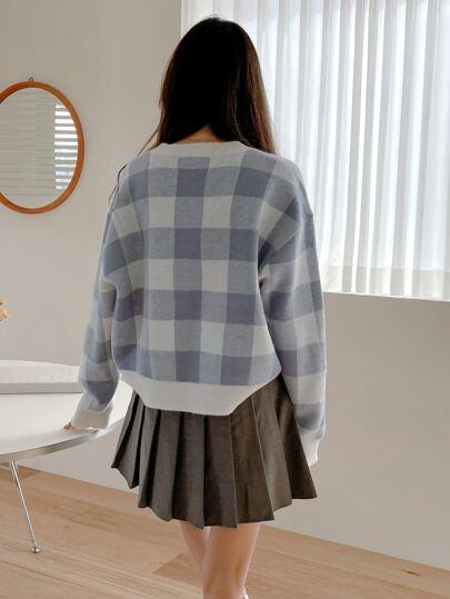 DAZY كنزة صوفية قطنية منقوشة بطراز أشكال النافذة فضفاضة مع أكتاف منخفضة، بأكمام طويلة، ملابس رمضان