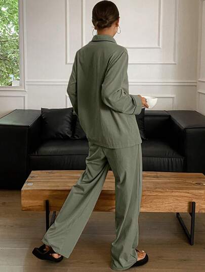 DAZY مجموعة بجامات بتصميم تريم الكنتراست الربيعي البسيط