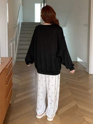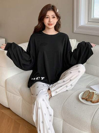 DAZY مجموعة بيجاما جزئين لون الكتلة ديكور ملابس علوية فضفاض + سراويل بيجاما بطباعة نقطية مرتخية الأربطة