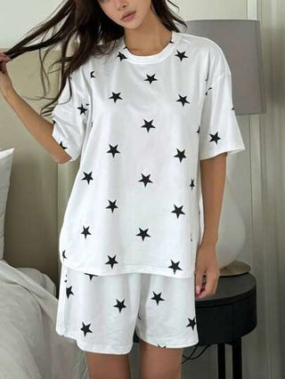 DAZY مجموعة بيجاما رقبة دائرية بأكمام قصيرة وسروال قصير مطبوع بنجوم