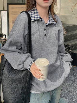 DAZY محاربة نسائية طويلة الأكمام بنمط مربعات طباعة مريحة، 2 في 1 بلوزة رياضية