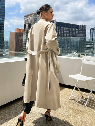 DAZY معطف ترينتش حريمي طويل الأكمام بنمط راجلان أحادي اللون، للاستخدام العادي والأعمال، خريفي