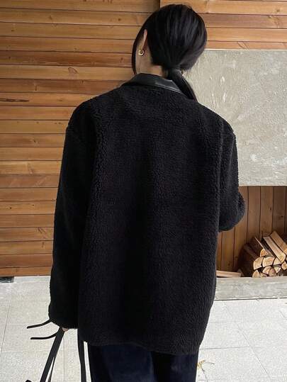 DAZY معطف سميك دافئ متوسط لون سادة بتفاصيل حياكة لنساء'
