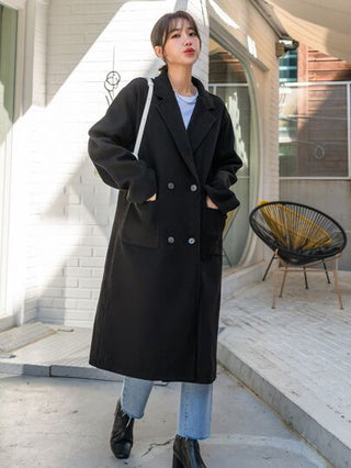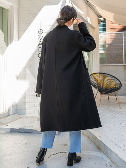 DAZY معطف مزدوج الصدر بياقة التطريز والكتف الانسيابي وجيبين