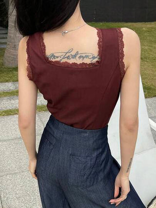 DAZY ملابس علوية كامي/ملابس علوية أكمام بلا أكمام ذو تصميم رفيع مزين بأزرار وتطريز وحاشية من الدانتيل للنساء موضة الصيف